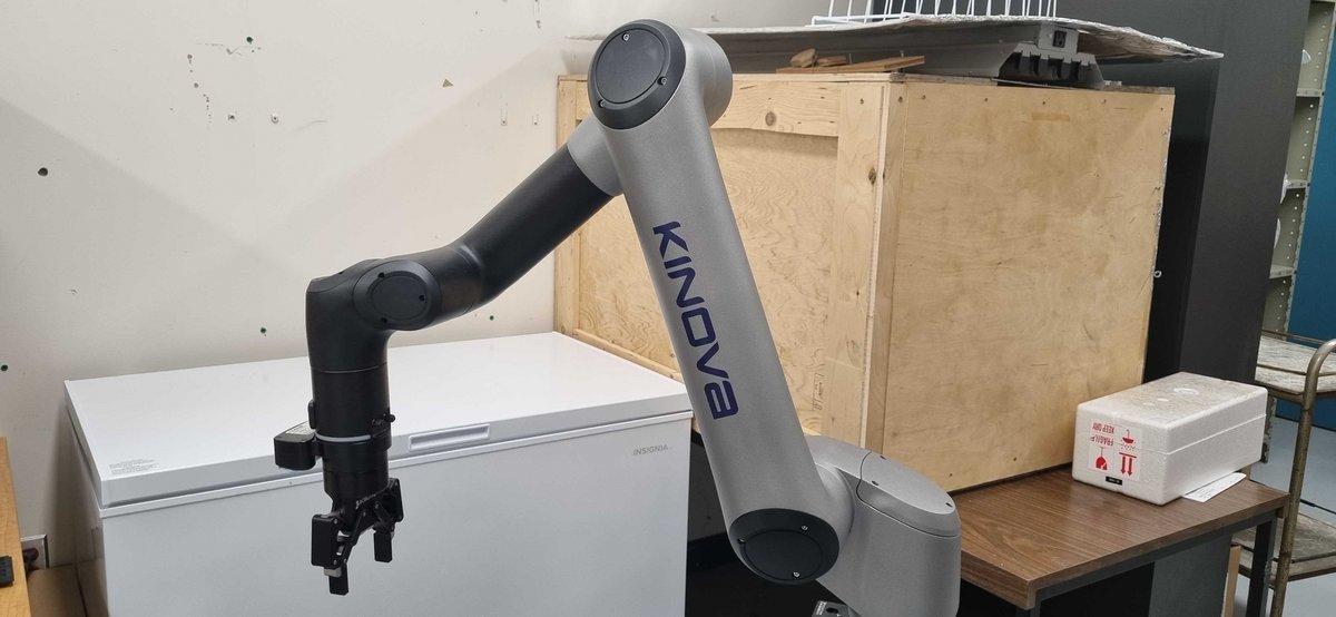 Our two robotic arms can automate certain repetitive tasks such as operating the press or the repetitive movement of objects in the laboratory.
