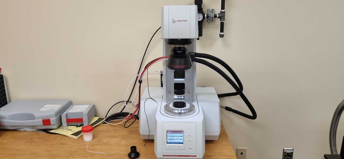 Our MCR 302e rheometer is equipped with a temperature controller ranging from -40 to 200 °C. It comes with various accessories and measuring geometries (25 mm plate-plate, 50 mm plate-plate, 25 mm cone-plate, 50 mm cone-plate and 25 mm concentric cylinder), as well as a measuring cell for performing dielectric spectroscopy during rheology analyses (DDS cell).