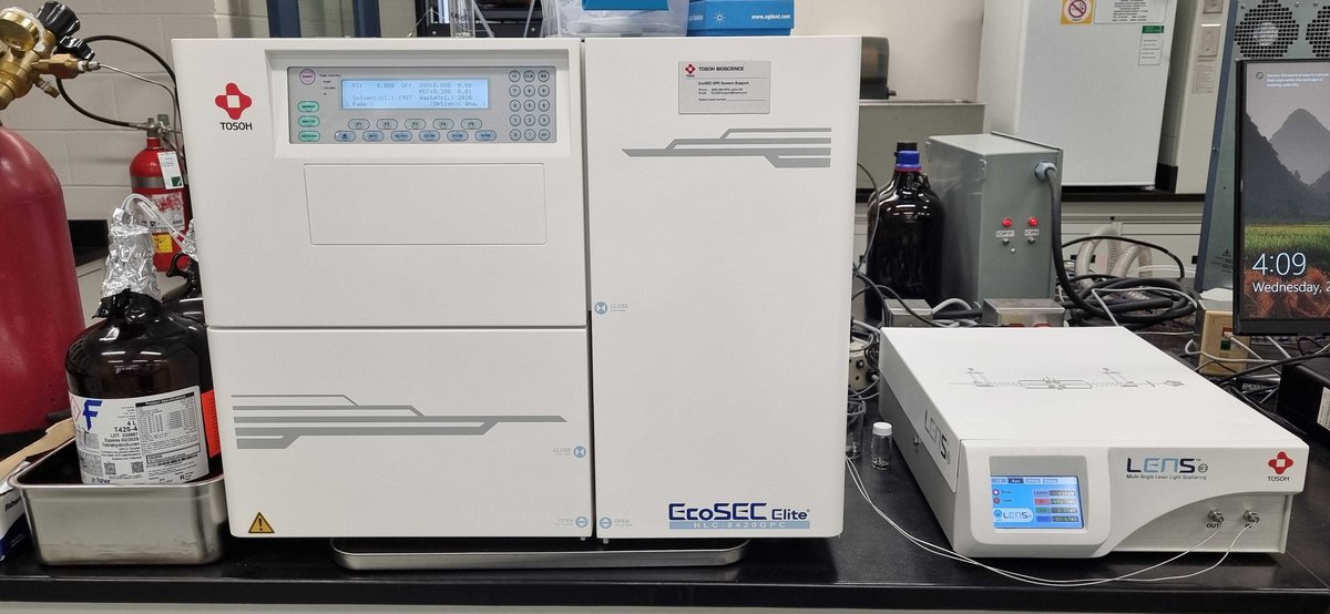 This instrument is one of the few (the only one to our knowledge) in Canada to have both triple detection (allowing the determination of the molar mass distribution and the branching degrees) and fraction collection (allowing the separate collection of the different molar mass distributions or even the fractionation of a distribution into several for subsequent analyses, for example in MALDI-TOF MS).